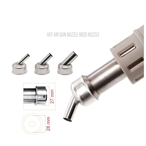 Wanneer je een microscoop gebruikt, ben je gedwongen je hete lucht onder een hoek te gebruiken. Dit maakt het lastiger om hete lucht rechtstreeks op de chip of het onderdeel dat je probeert te verwarmen te richten. Met 45 graden gebogen hoekmondstukken kunt u het ST-862D-handstuk met een microscoop gebruiken en toch uw warmte rechtstreeks op de chip richten.
